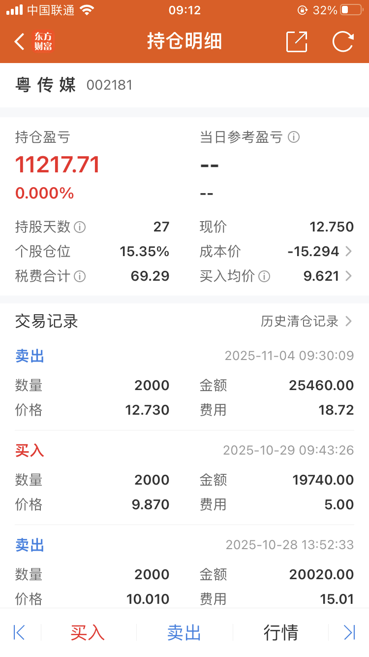 $粤 传 媒(SZ002181)$ 昨天卖出出了,你可以放心起飞了。。我的宝,大家都大赚发财
