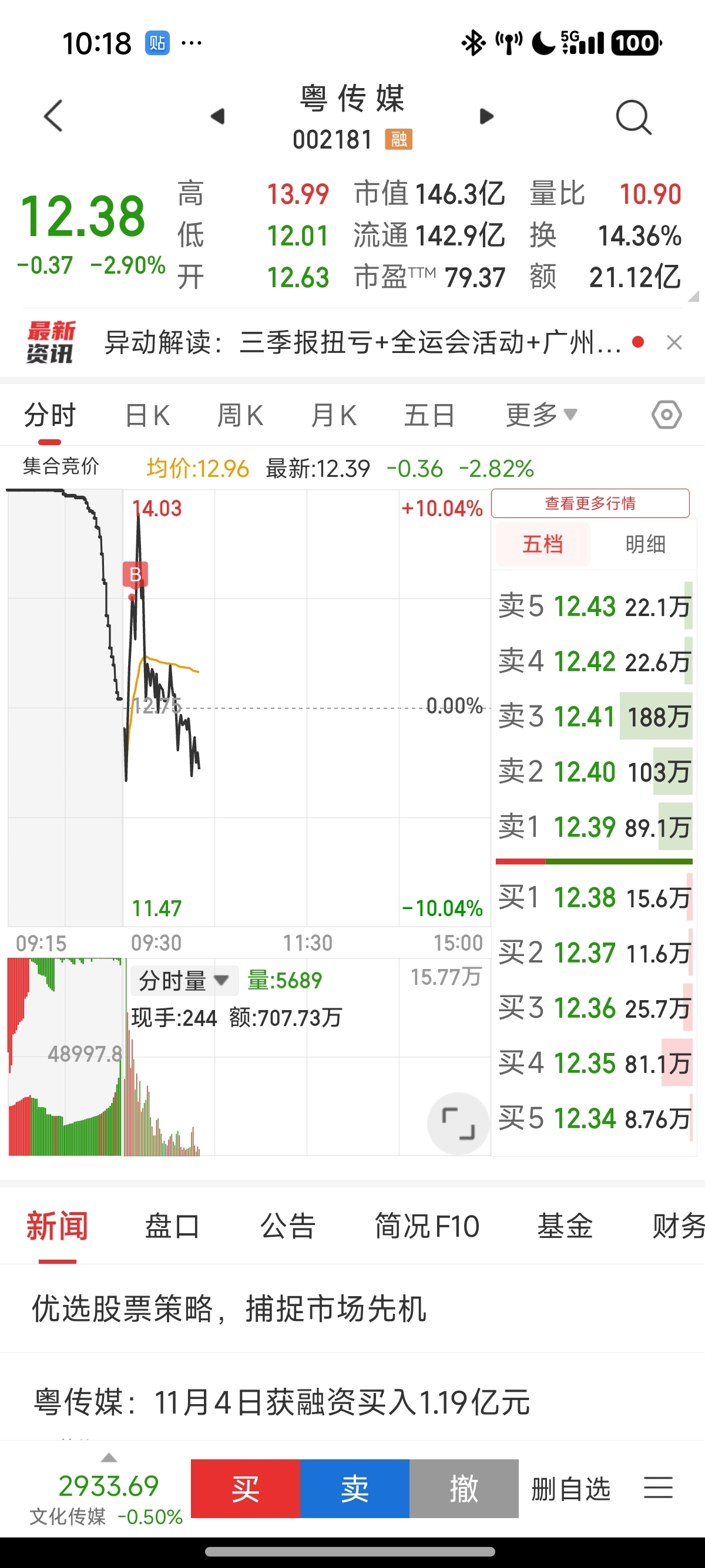 $粤 传 媒(SZ002181)$ 这辈子还能解套不?全仓而且是。。。