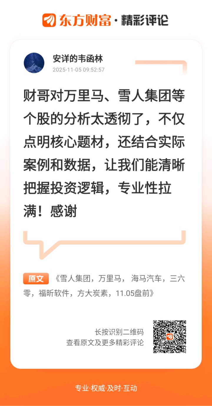 昆仑万维:看情况切换,别死扛!有人问 “要不要换题材票”?先观察:能跟上 AI 应用节奏就拿,一直磨叽没起色,就考虑换雪人集团、万里马这种有逻辑的,别换纯概念票。