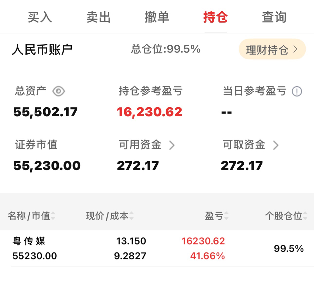 $粤 传 媒(SZ002181)$ 我一小散挣了40个点大不了亏20个点在出去,坚定持有两天~