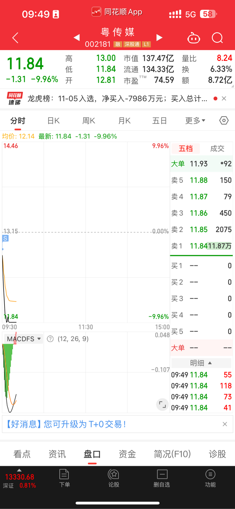 $粤 传 媒(SZ002181)$ 跑得快,好世界