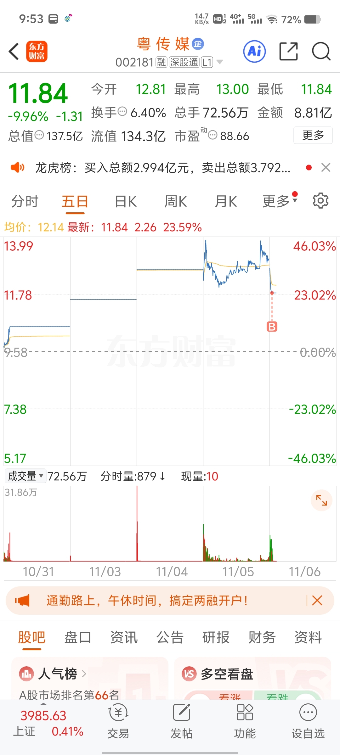 $粤 传 媒(SZ002181)$ 聊着天就进来了,撤都来不及,脑子瓦特了,明天可咋整哦