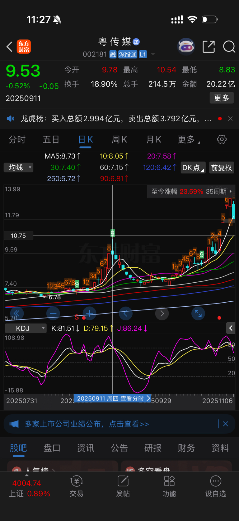 $粤 传 媒(SZ002181)$ 大家也不用太担心,A 不了,再有一个跌停就能企稳了,10.7-10.6 有十日线支撑。而且是前期高点 w 底……这个位置强支撑,年底还有贺岁档电影,马上世界杯年,长期看向下也就一个跌停,无大碍