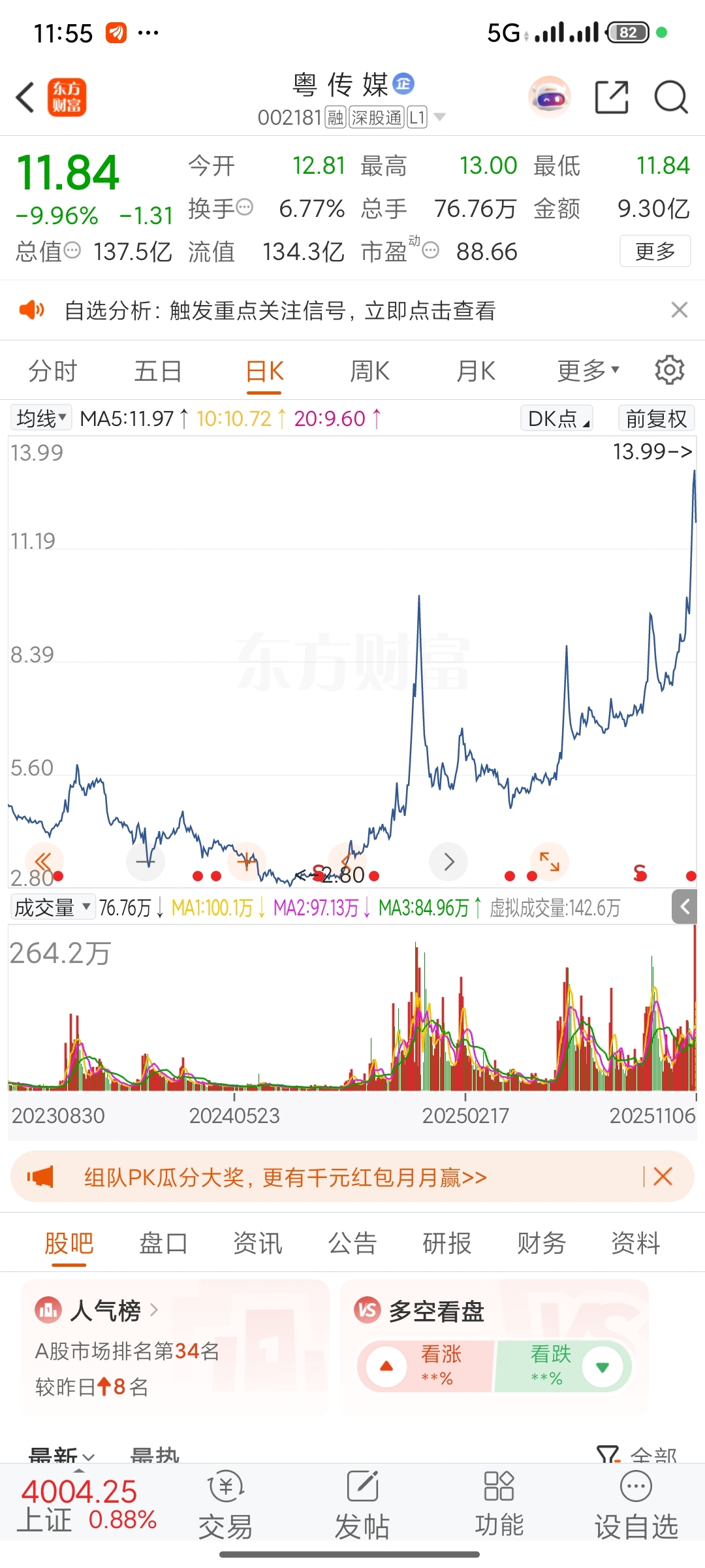 $粤 传 媒(SZ002181)$ A杀了,这走法庄家屡试不爽