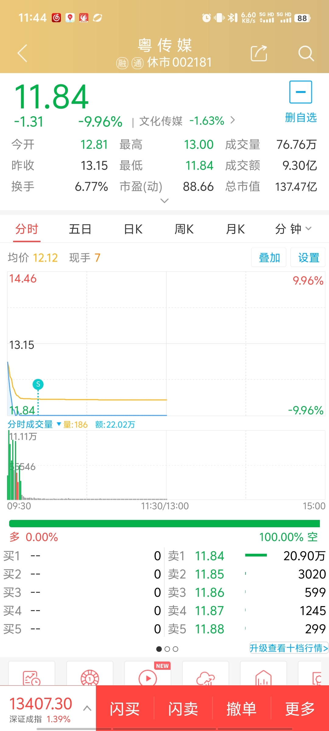 $粤 传 媒(SZ002181)$ 赚了4000卖了