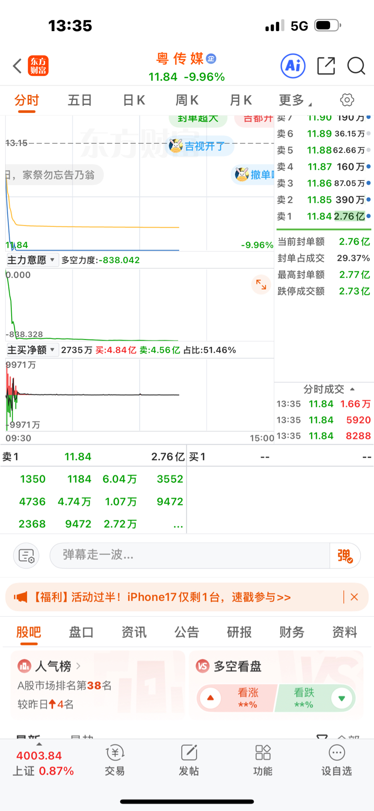 $粤 传 媒(SZ002181)$ 怎么看,好像没人买,使劲砸了