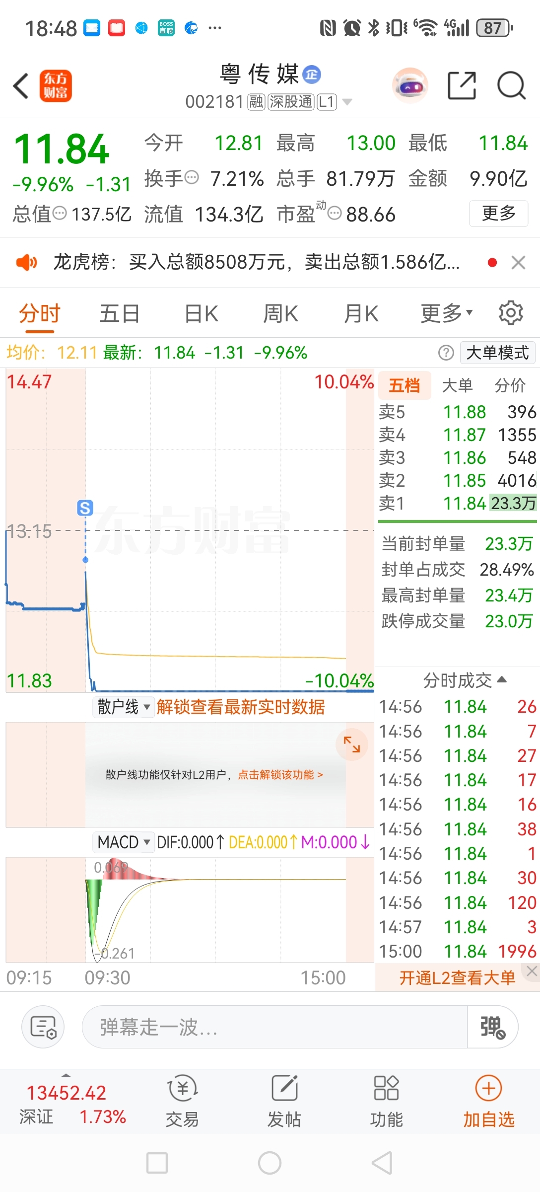 $粤 传 媒(SZ002181)$ 慢一秒都卖不出去