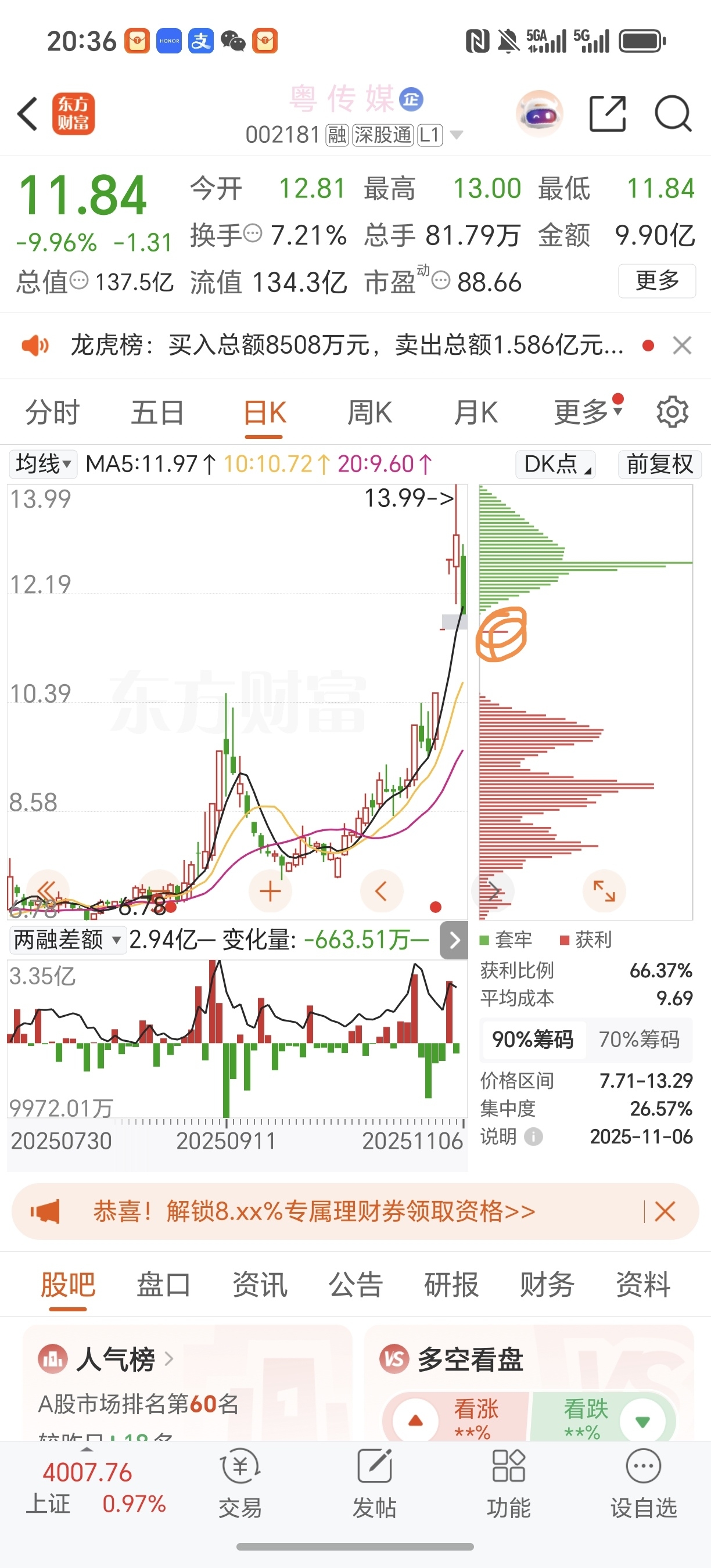 $粤 传 媒(SZ002181)$ 明天筹码会集中在这个区域