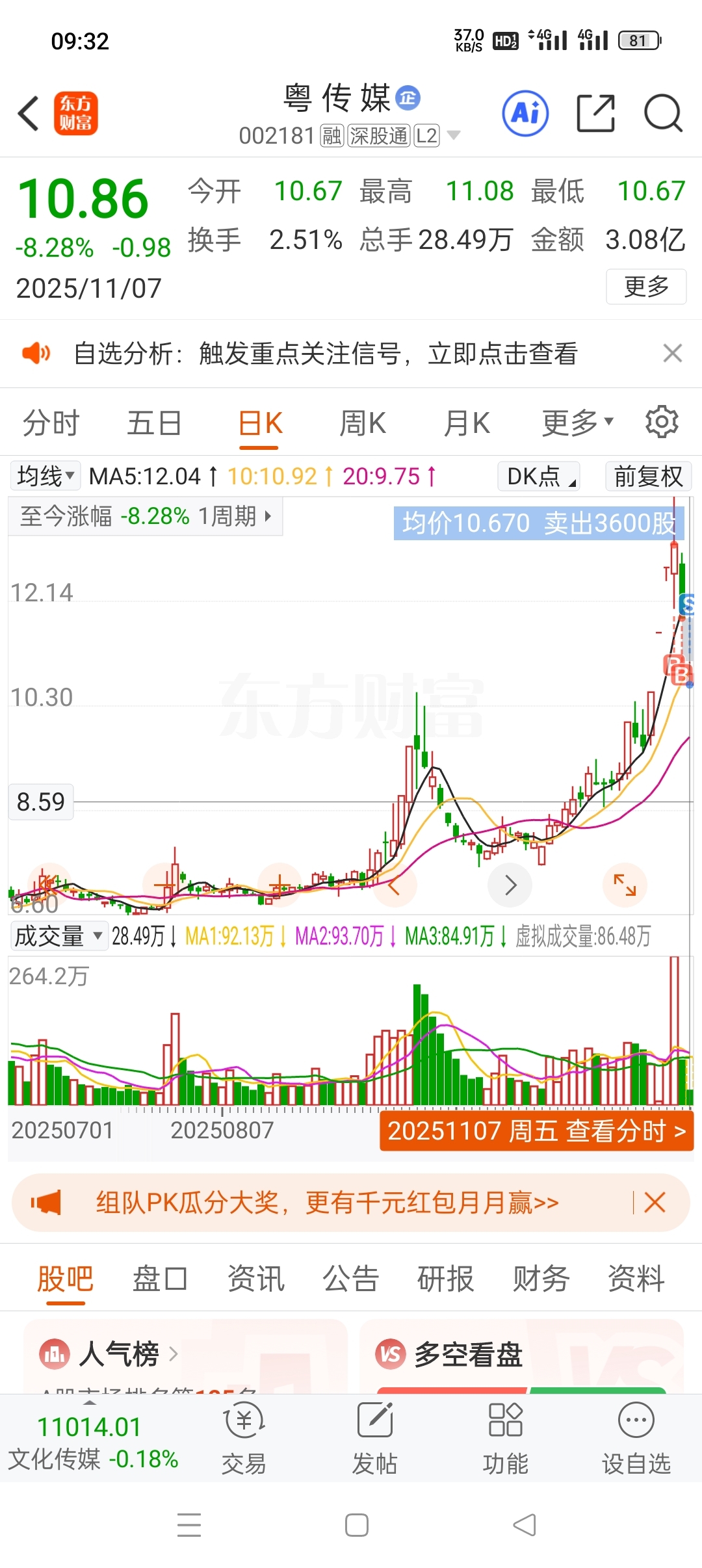 $粤 传 媒(SZ002181)$ 韭菜以跑