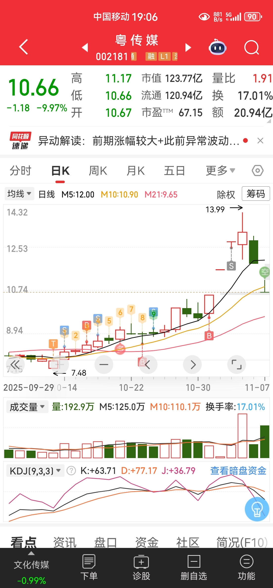 感谢粤传媒让我三天赚了25个点。同时给各位兄弟一点建议。这个老桩特别狠不要想着格
