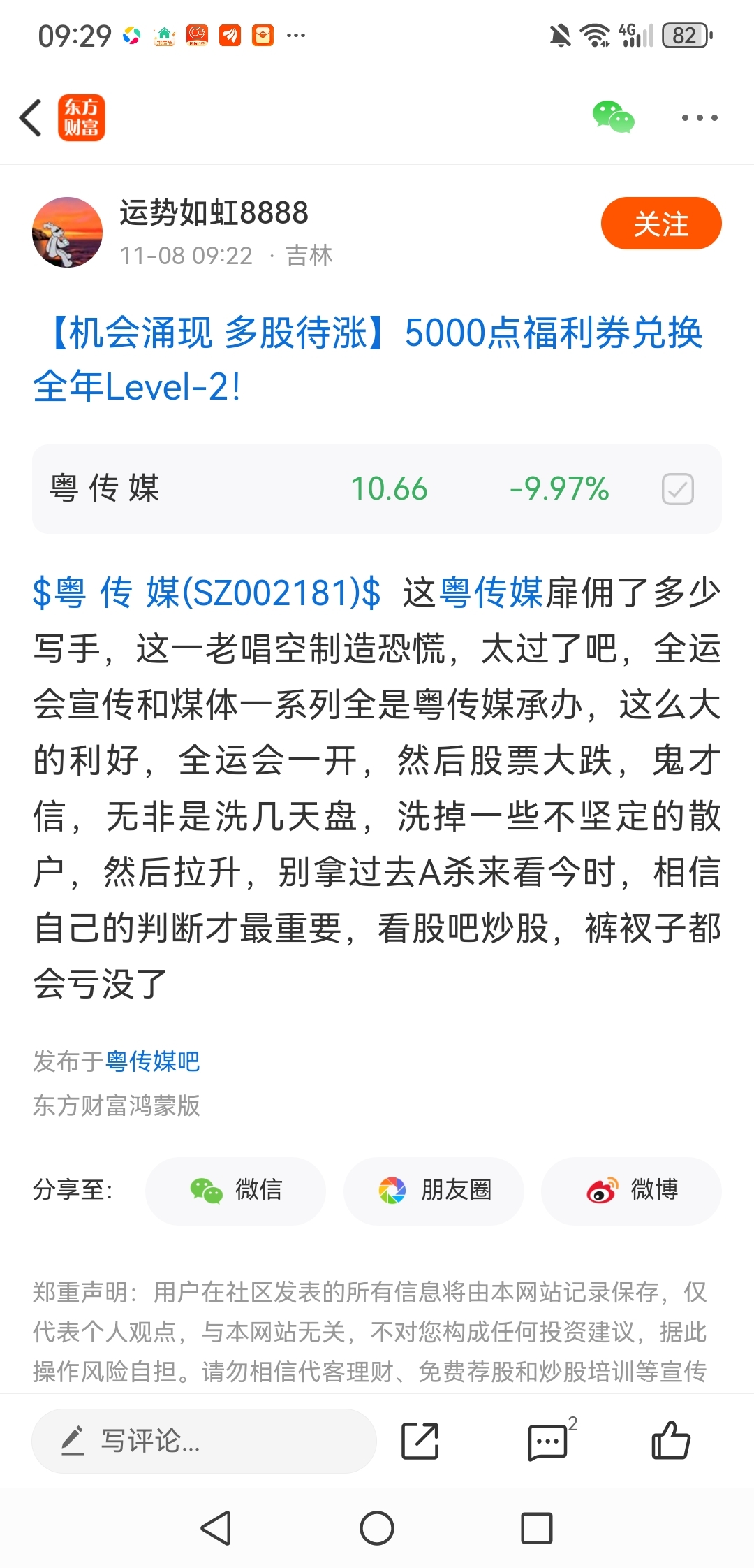 温馨提示: 1.根据《证券法》规定,禁止编造、传播虚假信息或者误导性信息,扰乱证券市场;2.用户在本社区发表的所有资料、言论等仅代表个人观点,与本网站立场无关,不对您构成任何投资建议。用户应基于自己的独立判断,自行决定证券投资并承担相应风险。《东方财富社区管理规定》