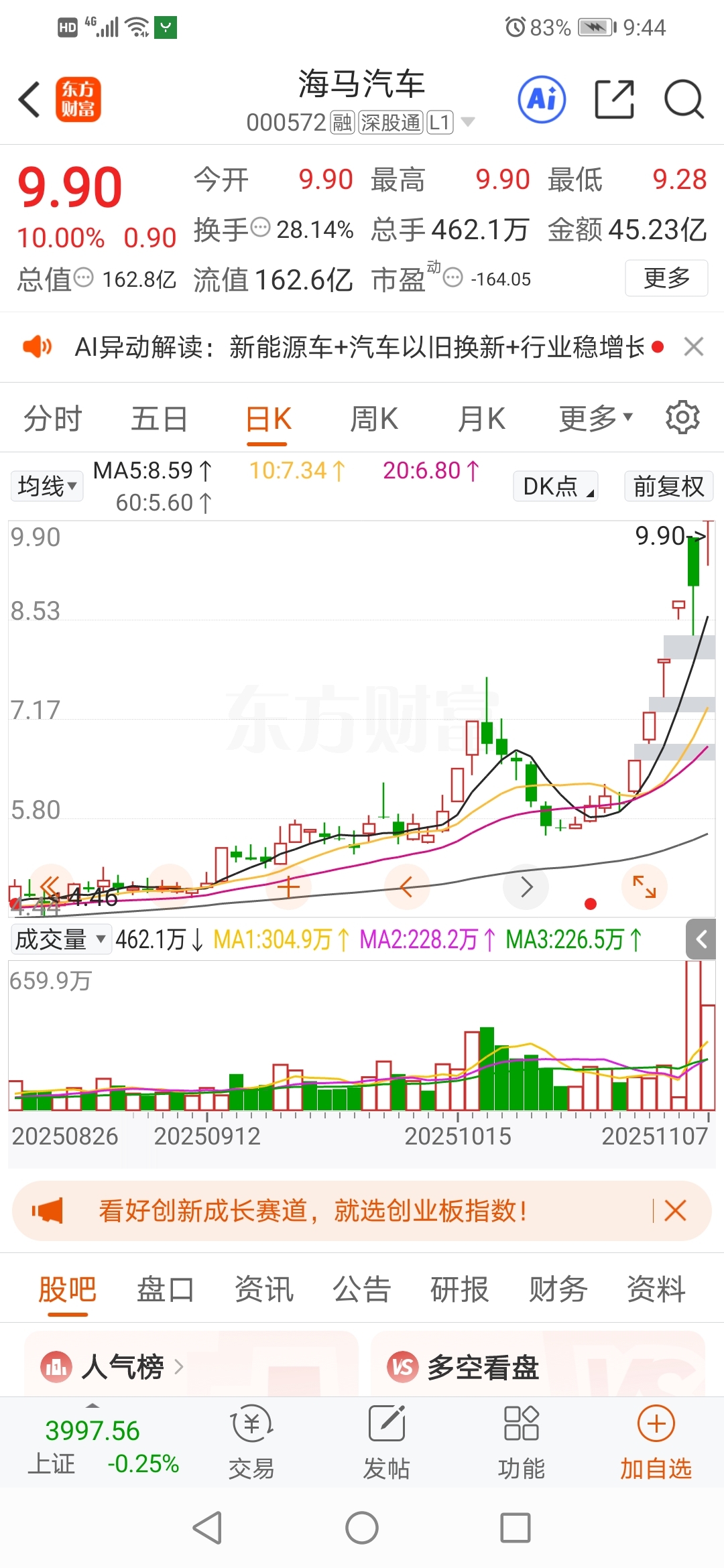 $粤 传 媒(SZ002181)$ 和海马一样,狠命打下来,再快速拉上去。