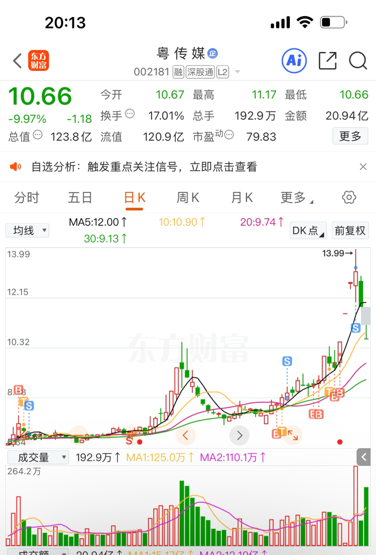 $粤 传 媒(SZ002181)$ 明天要是不涨停就丢广东人脸了。反正我走了