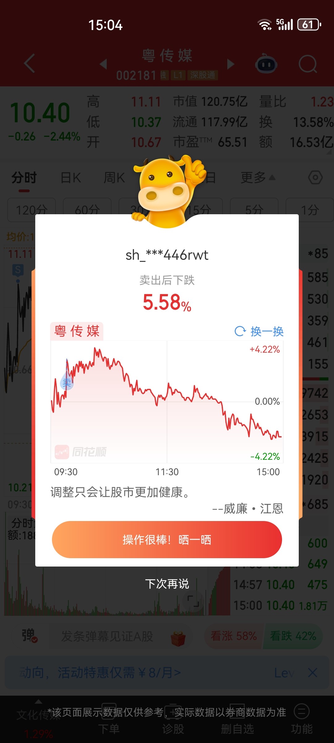 $粤 传 媒(SZ002181)$  这钱老子不要了 你来吧