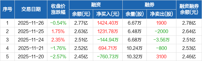 粤传媒:融资净买入1424.4万元,融资余额2.77亿元(11-26)