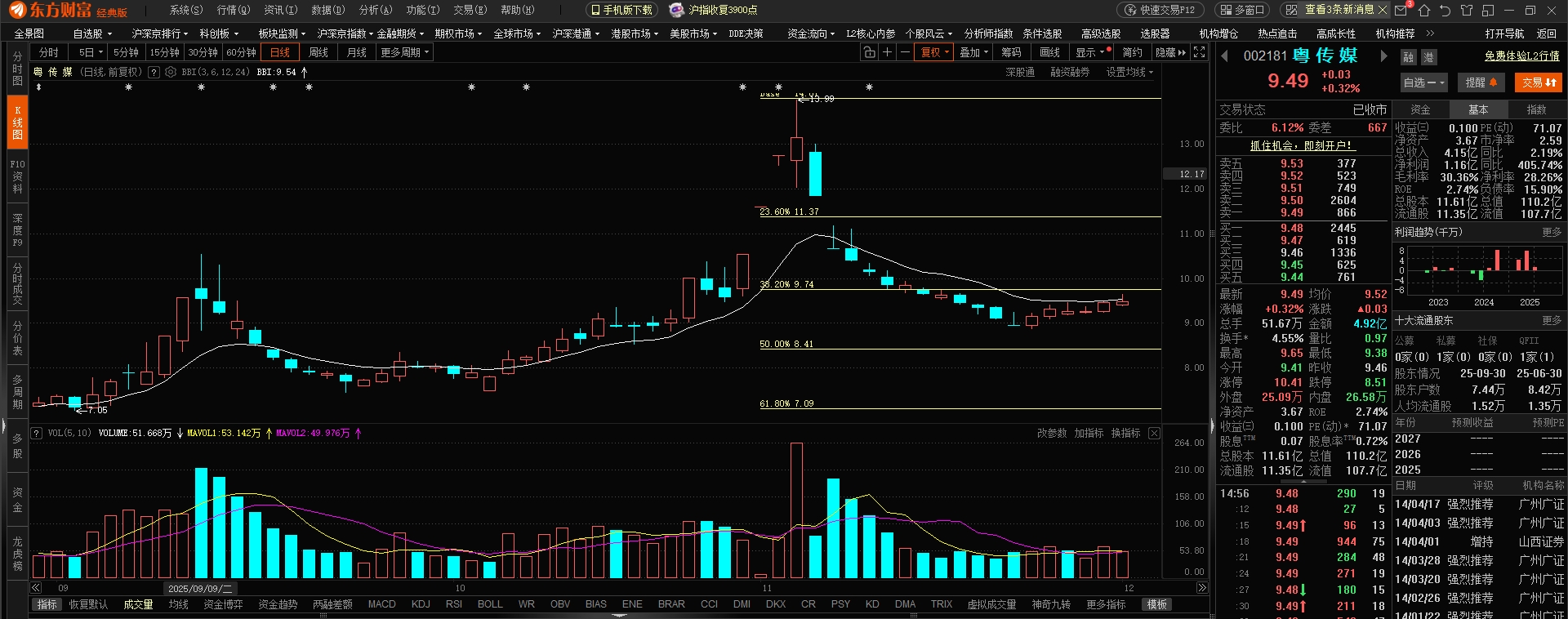 粤传媒加上今天已经6连阳,距离黄金分割位只有一步之遥,不给回踩的话就是要直接破位