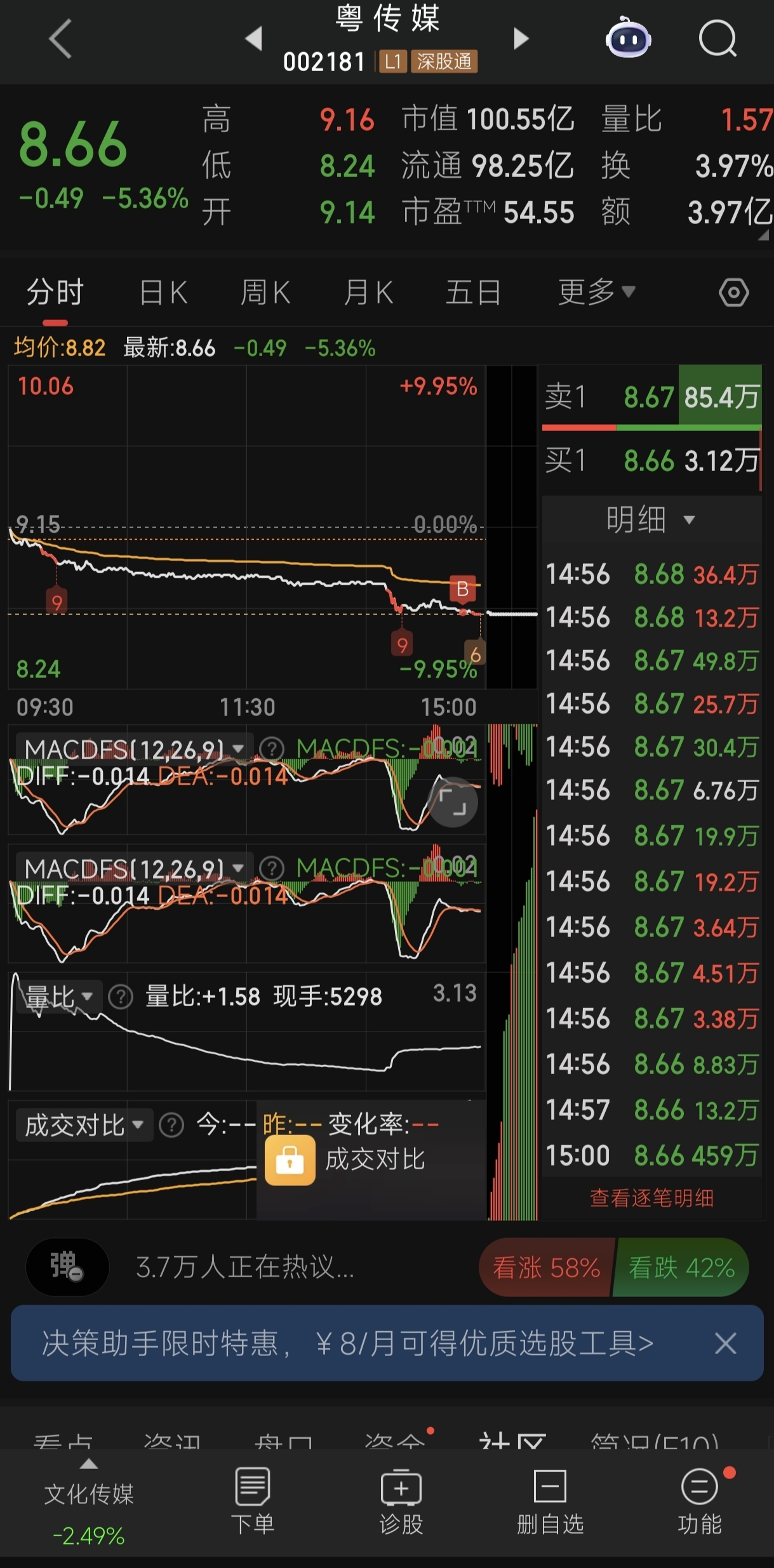 $粤 传 媒(SZ002181)$ 符合我的三级交易模式,先建仓