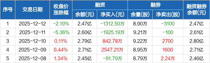 粤传媒:融资净偿还1312.5万元,融资余额2.47亿元(12-12)