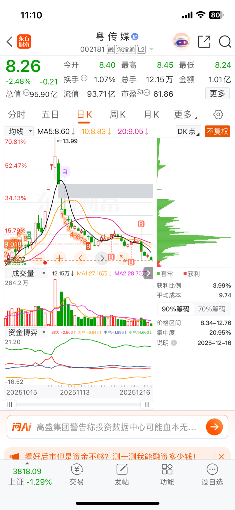 $粤 传 媒(SZ002181)$ 绿的发慌,都不看好你,你也是不争气