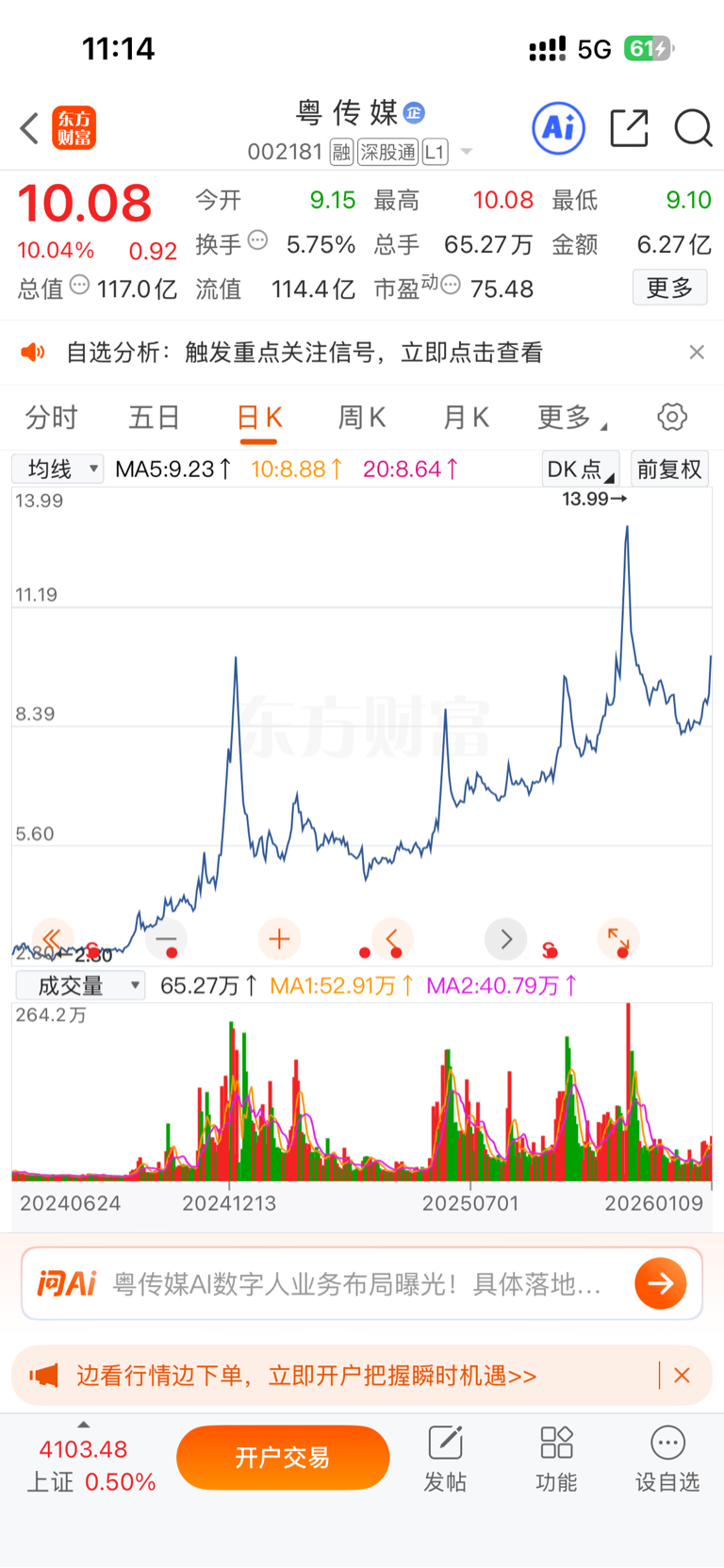 $粤 传 媒(SZ002181)$ 5浪正式开启,破14