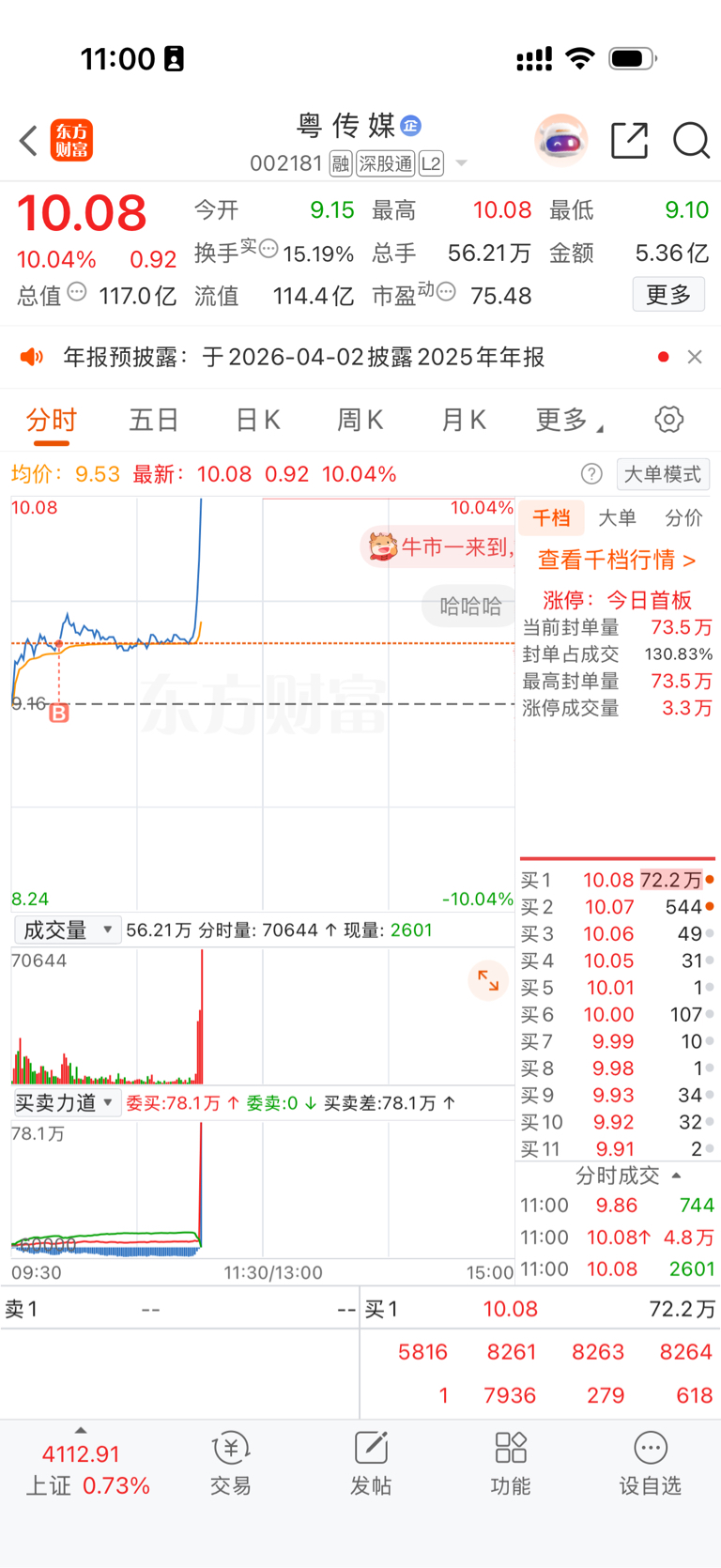 $粤 传 媒(SZ002181)$ 感谢主力,感谢轮动。周一别叫吃面就好