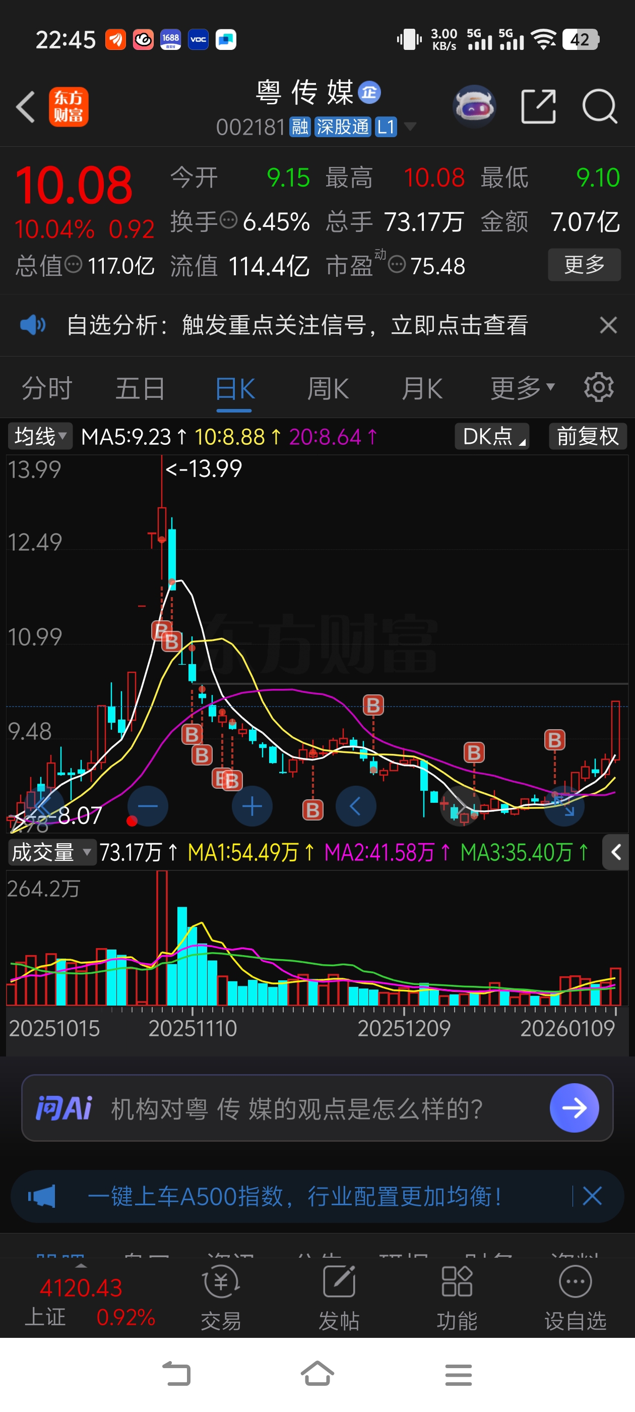 $粤 传 媒(SZ002181)$ 追到最高都要盈利才卖