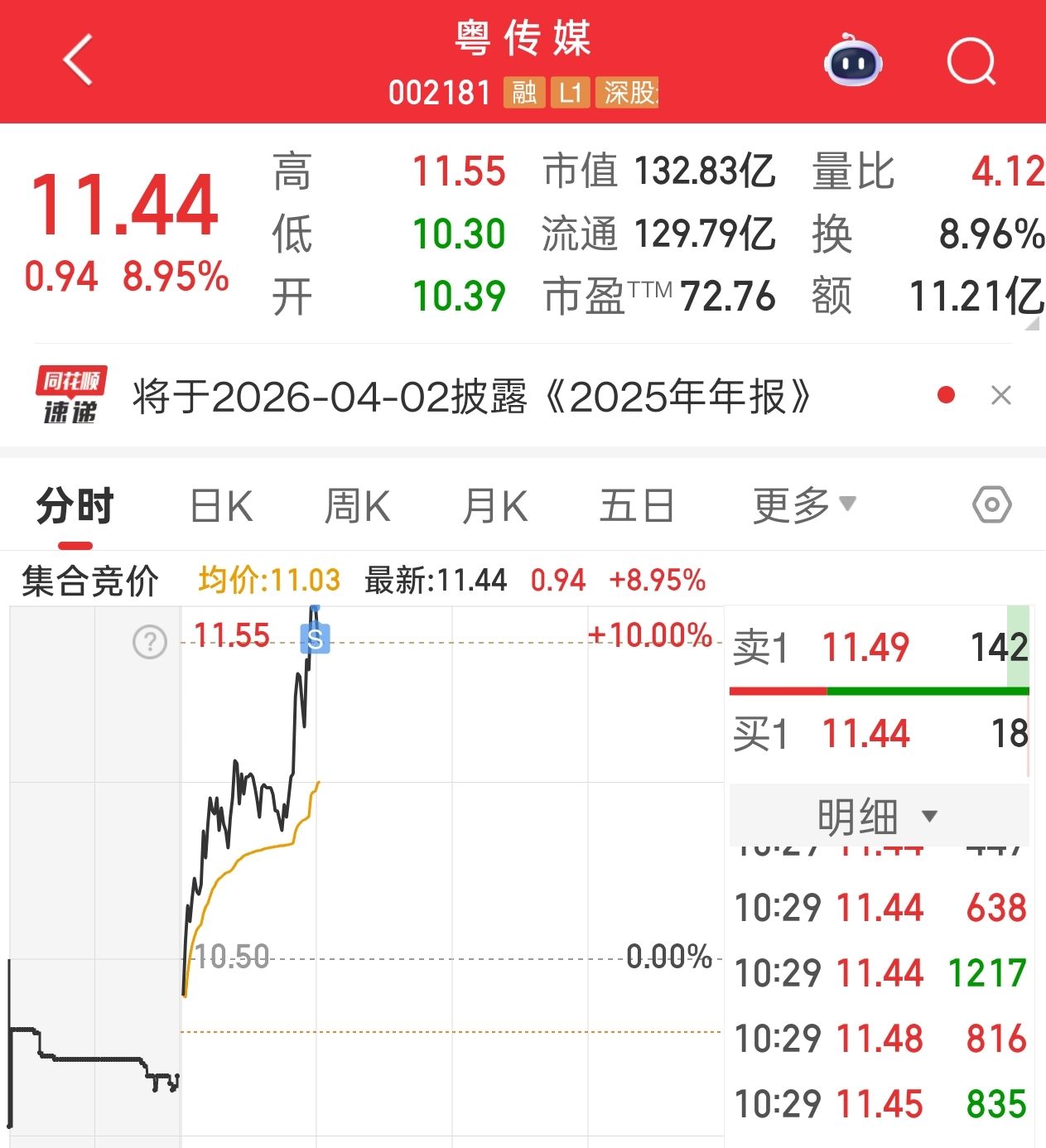 $粤 传 媒(SZ002181)$ 11.55走了,感谢主力,留下的兄弟发财