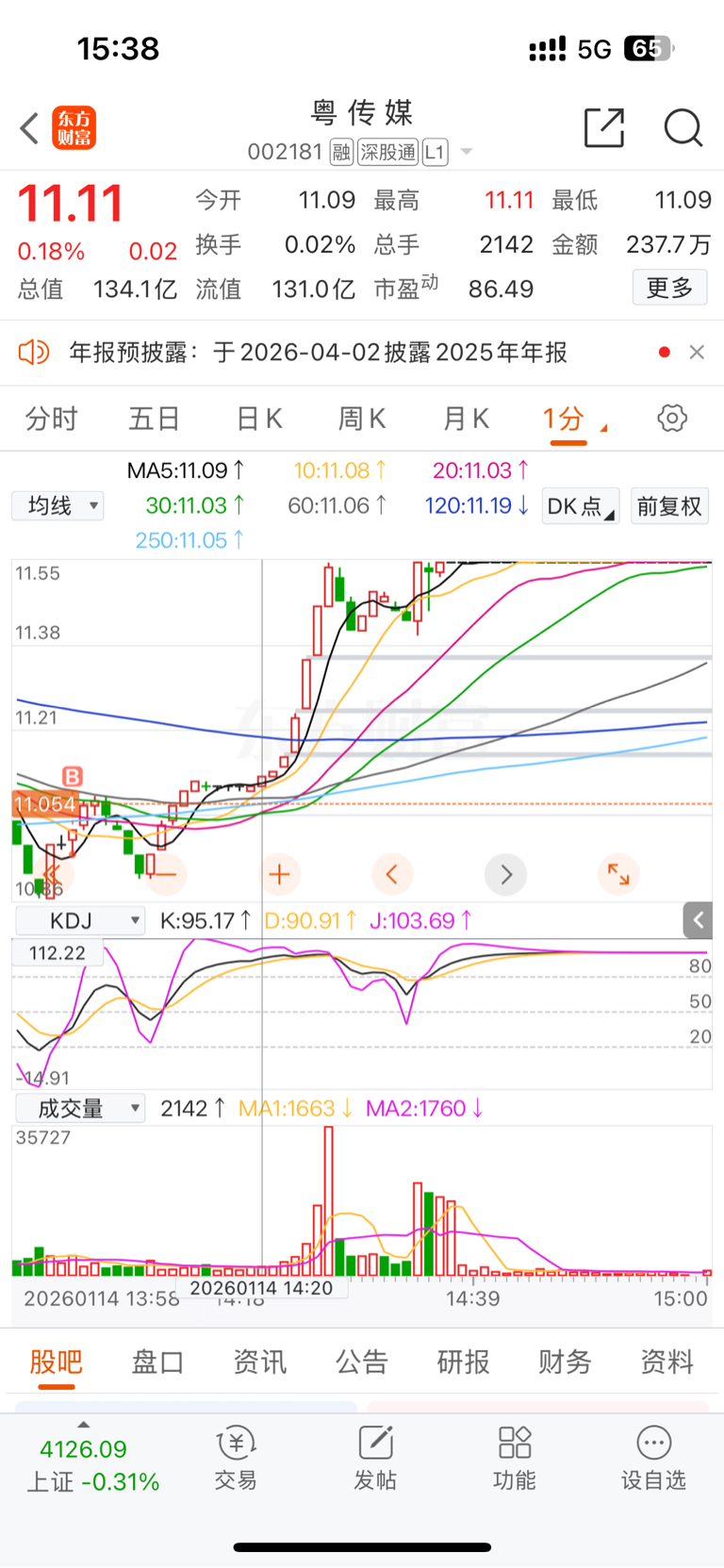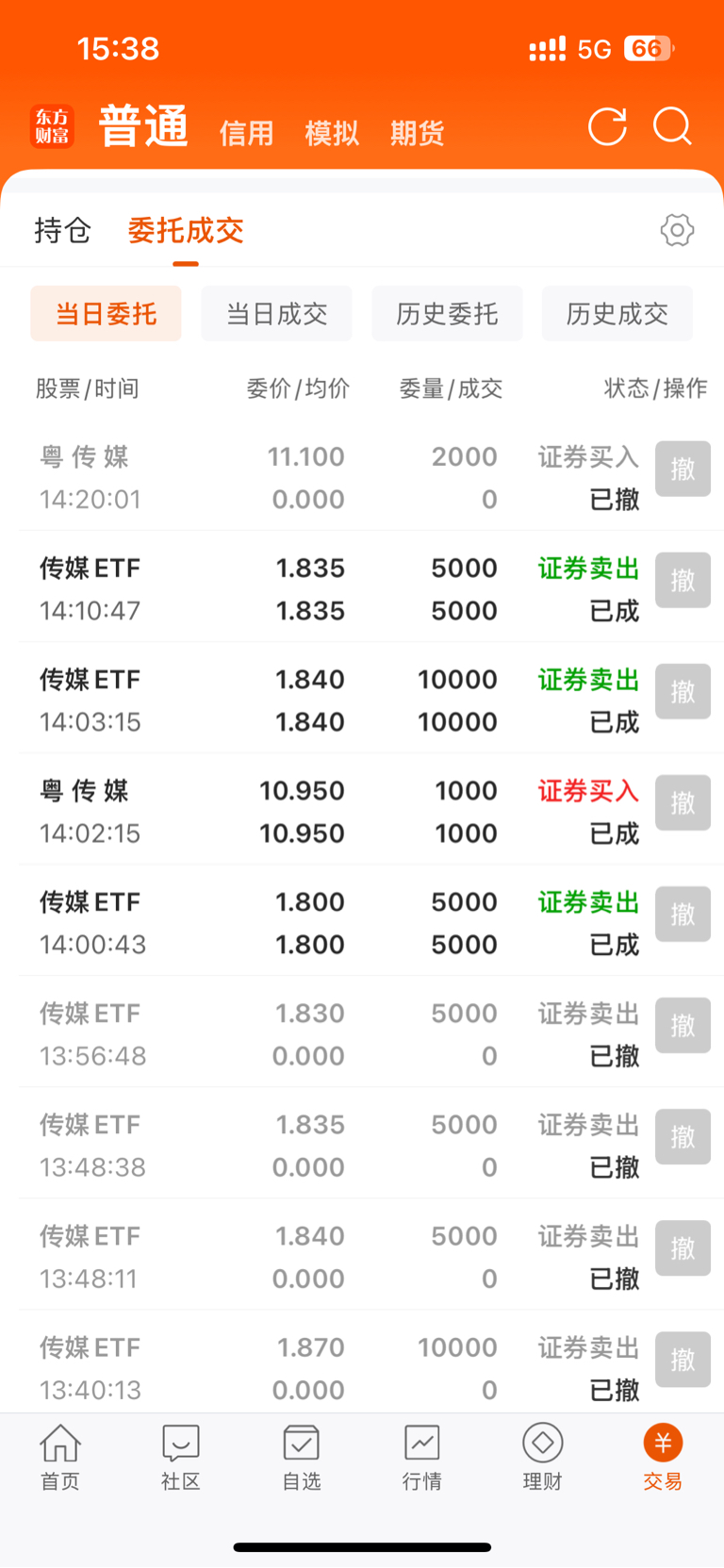 14:20的时候挂单11.10,股价11.11,差一分钱成交,2000股没有加仓