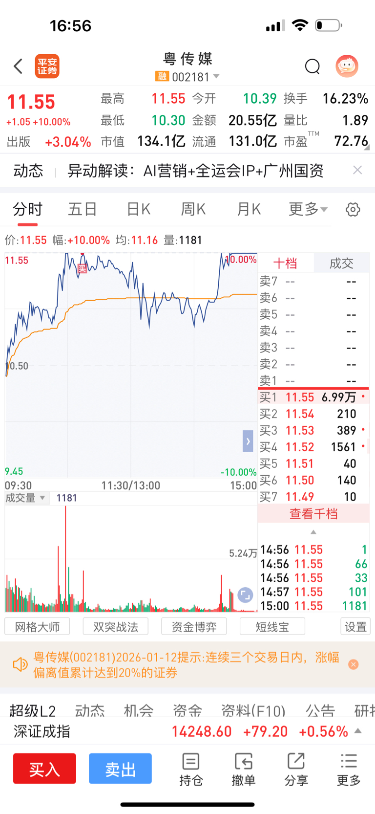 $粤 传 媒(SZ002181)$ 又来打板咯,幸运股