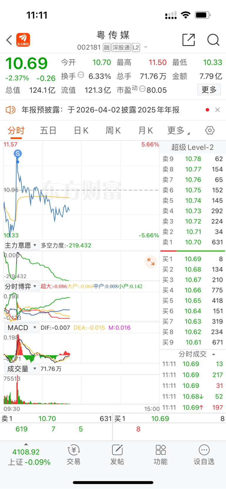 $粤 传 媒(SZ002181)$ 跑了慢了些,但是抓住机会了,谢谢主力和各位兄弟们,先走一步,改日再会