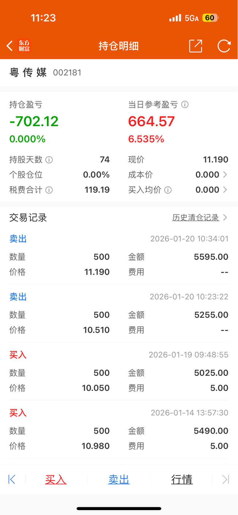 $粤 传 媒(SZ002181)$ 算是最好的结局了,从亏一万多坚持到现在,不求多赚,解套了……提前祝各位新年快乐哦