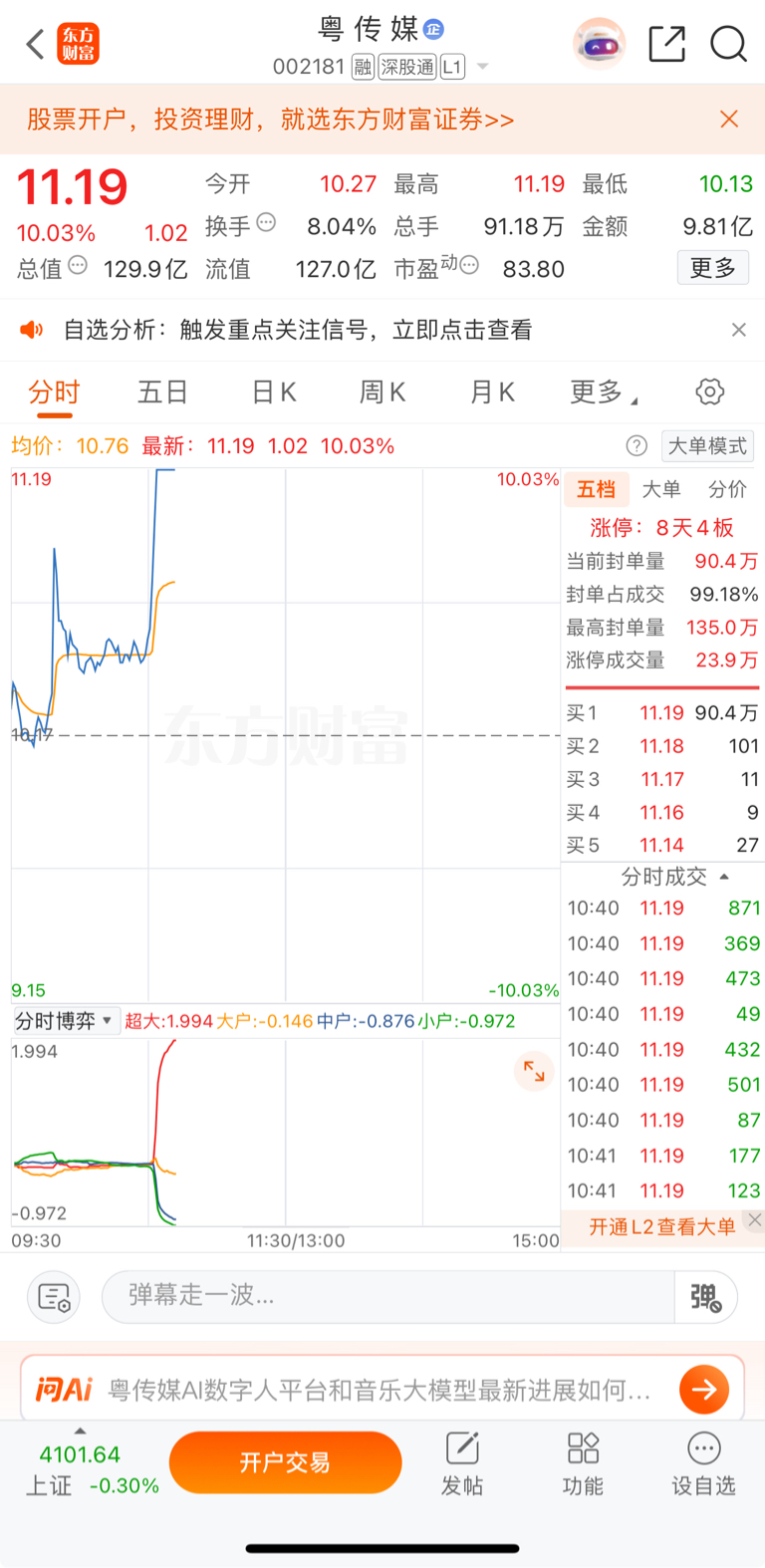 $粤 传 媒(SZ002181)$ 上午收盘了!大家记得
