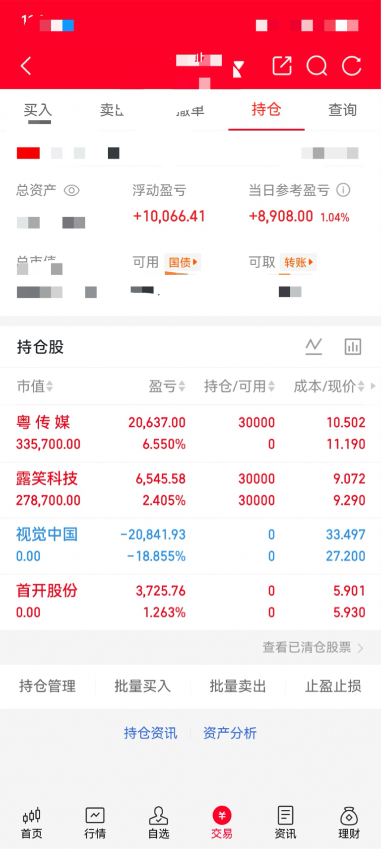 早上大盘高开低走反复震荡最终以4101.62收尾,早上没有太大操作,今天早上果断跟入粤传媒博弈