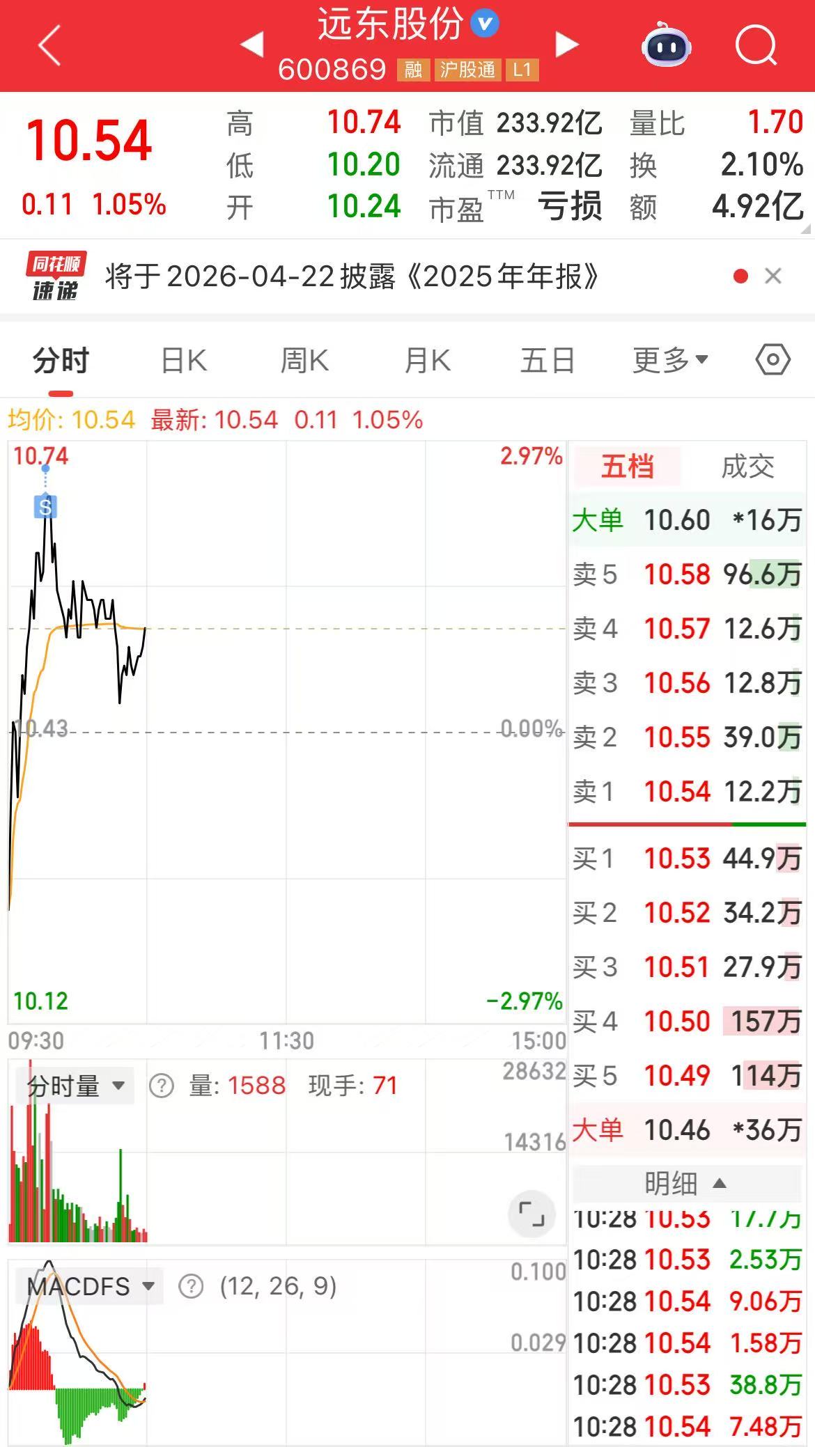 ,可是可是,小粤粤昨天被我10.92卖飞啦,今天他又跌回来我真忍不住啊。所以,我不占便宜,什么价格卖飞的就什么价格买回来。感觉远东成了大冤种,我心属的还是小粤粤