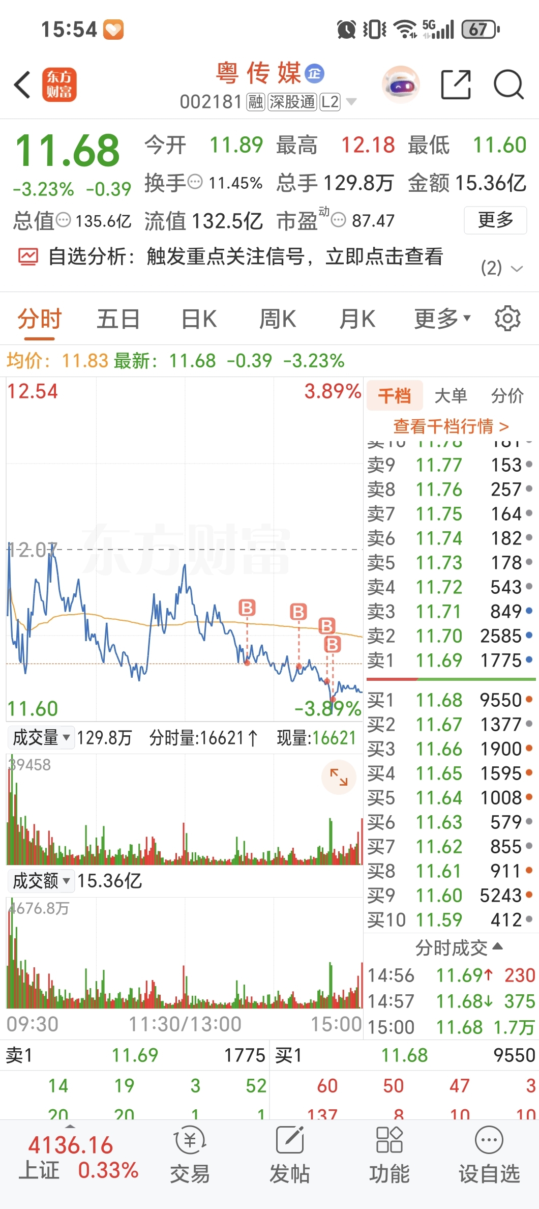 $粤 传 媒(SZ002181)$ 趋势没有走坏,稳稳5日线上。分时图承接有力量价齐升,很明显主力在吸筹。商业航天被摁后快速反弹!欧皇的出来明显也会带领Ai修复!看好周一!