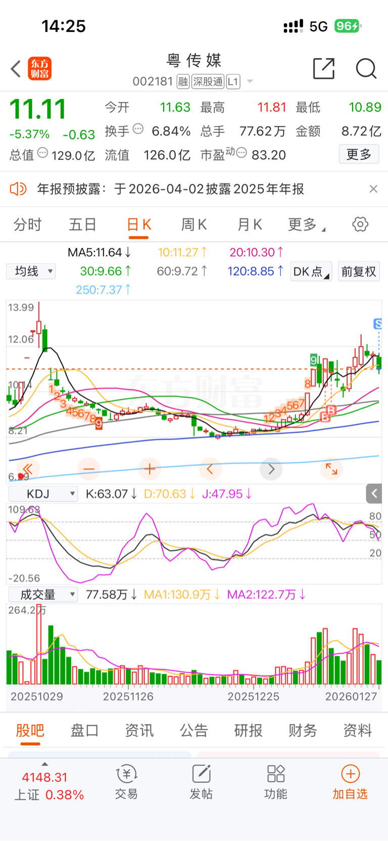 $粤 传 媒(SZ002181)$ 耽误我时间,不来了