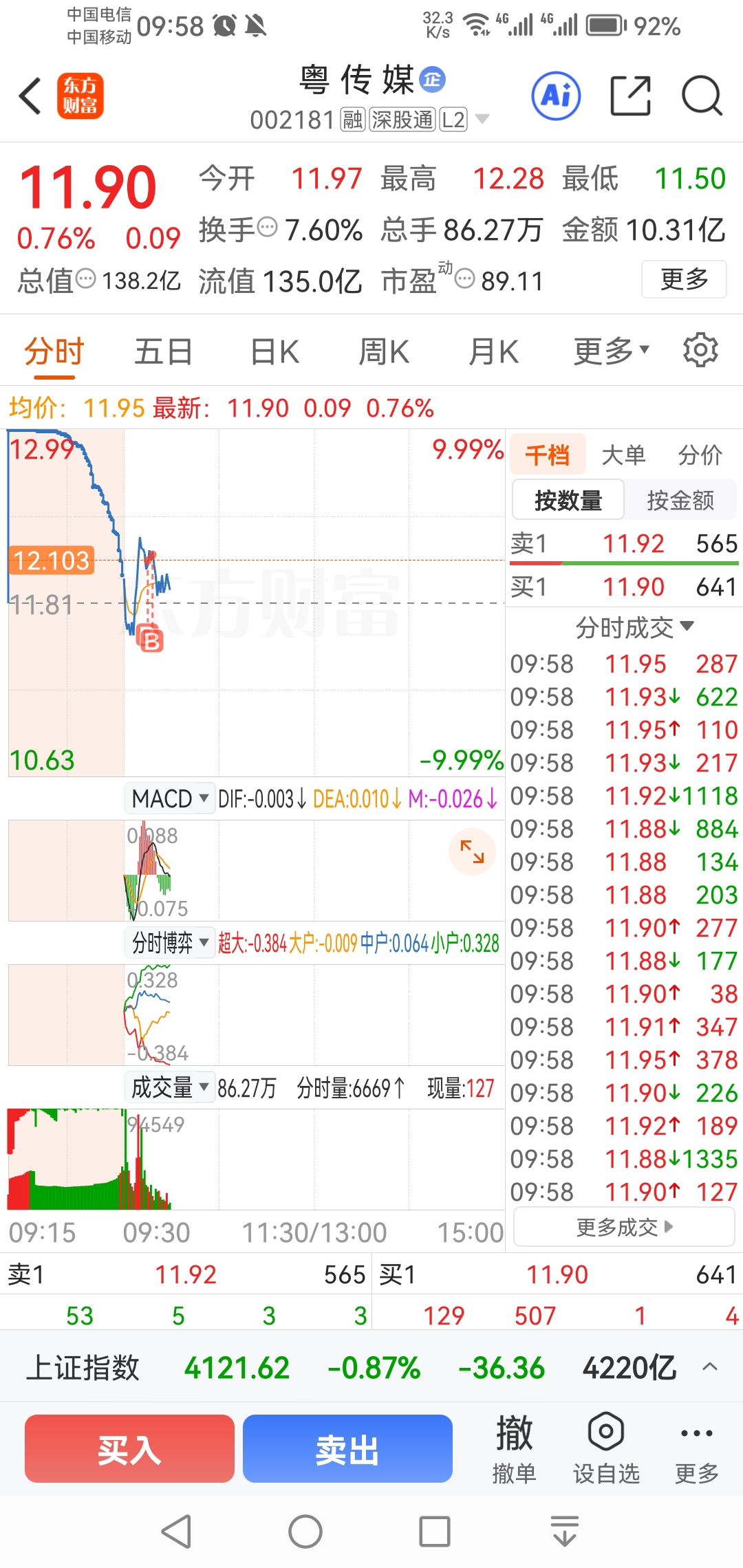 $粤 传 媒(SZ002181)$ 昨天康强高位接盘,今天这又接一单