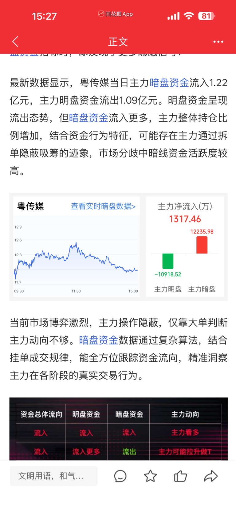 $粤 传 媒(SZ002181)$ 别看了,明天还要跌,明盘流出,暗盘流入,流入的就是用来明天砸的,都是血的经验和教训