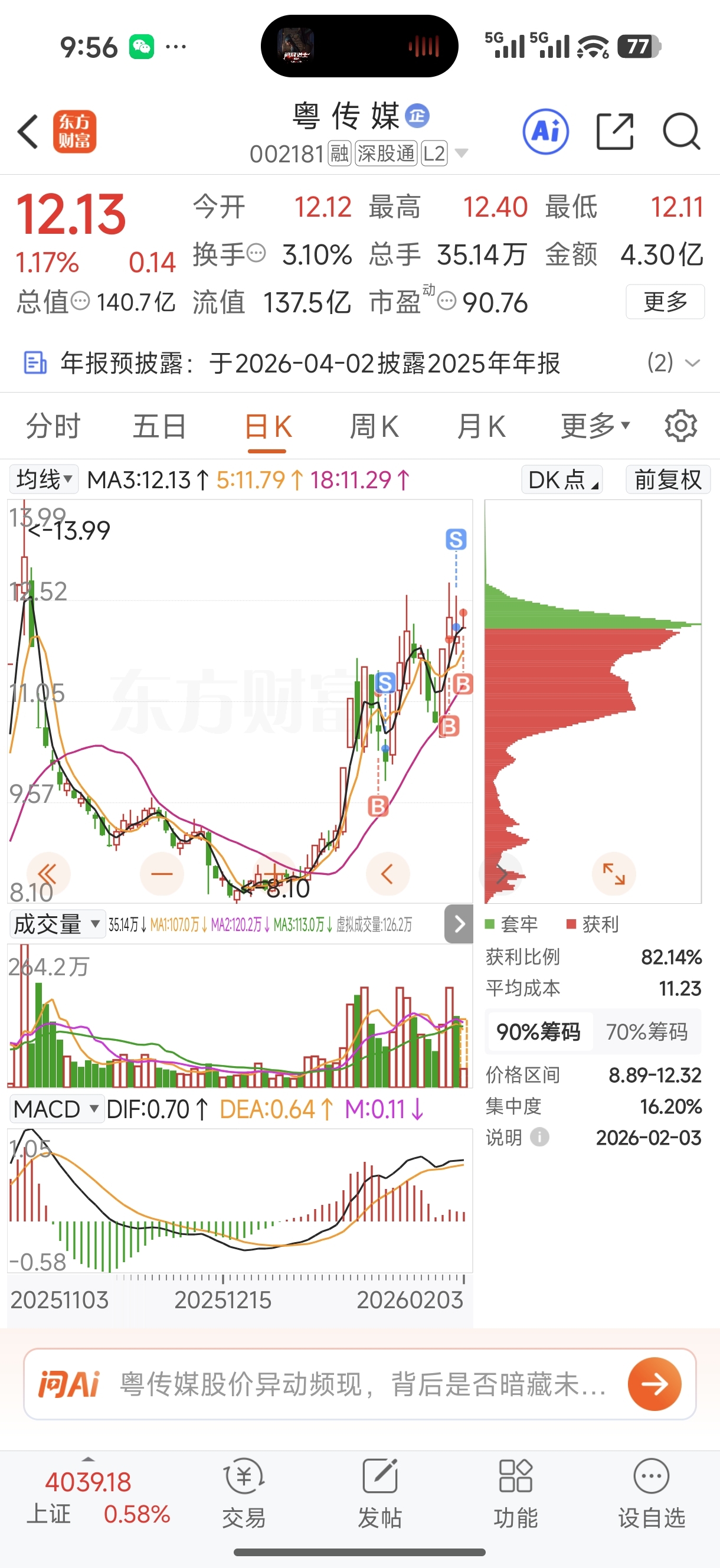 $粤 传 媒(SZ002181)$ 怎么老是买你