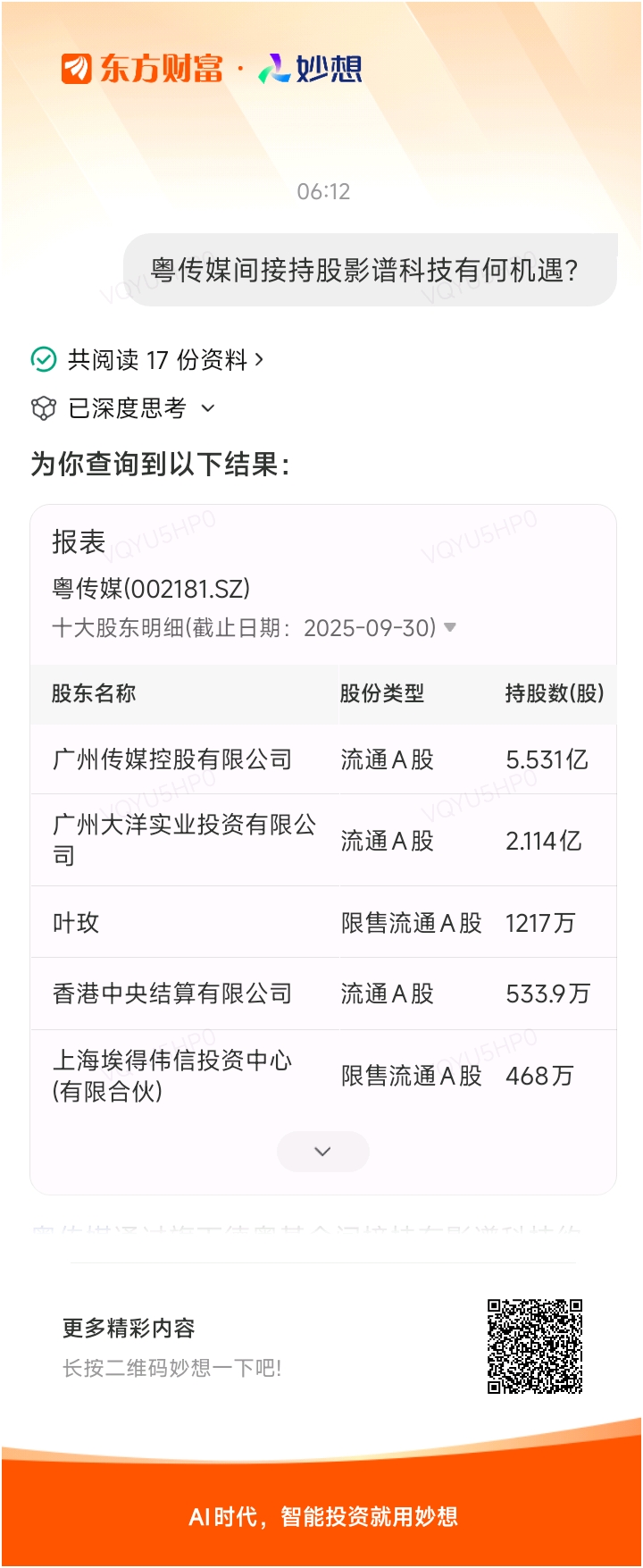 #@妙想,你怎么看?# 妙想一下:粤传媒间接持股影谱科技有何机遇?