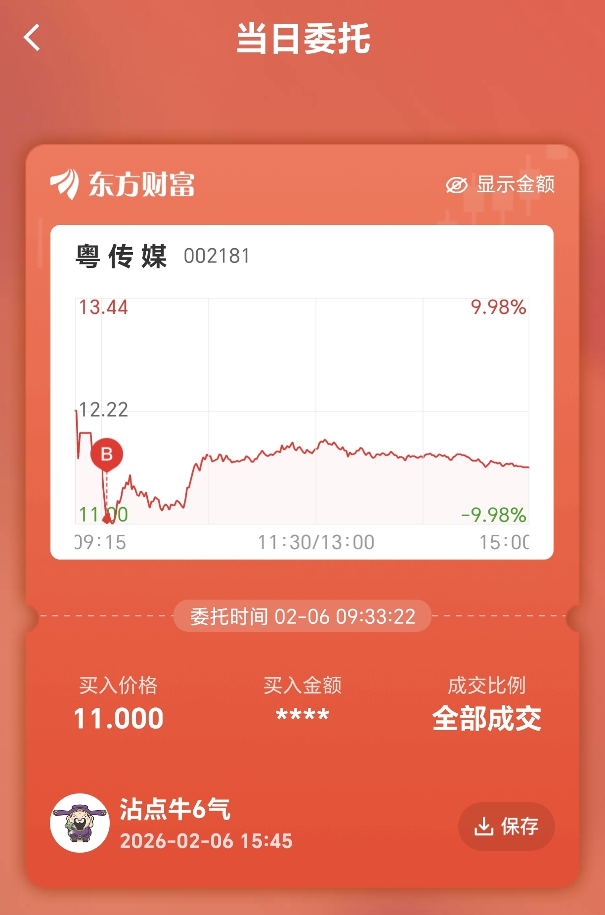 $粤 传 媒(SZ002181)$ 抄底成功 下周开盘就跑