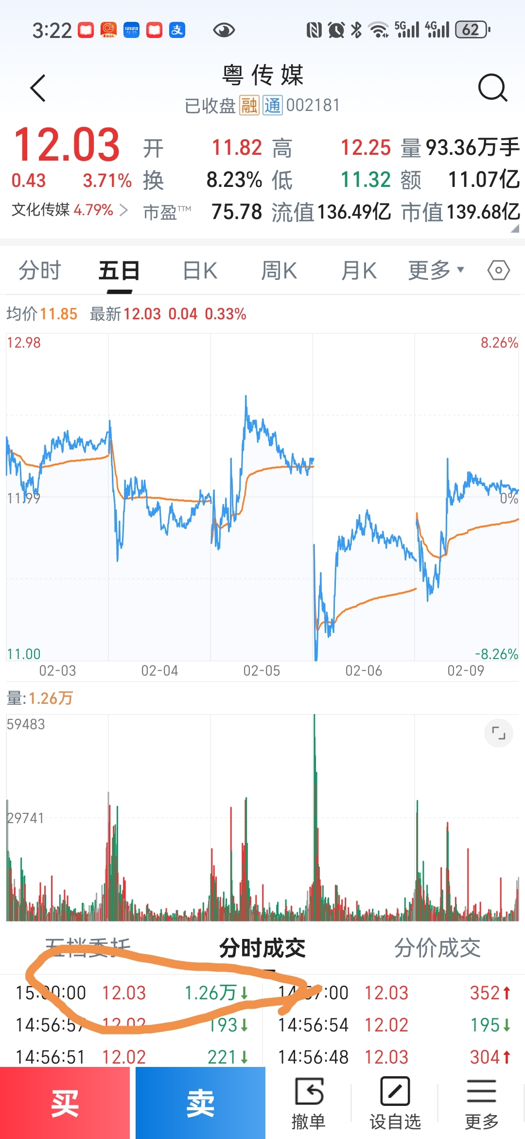 $粤 传 媒(SZ002181)$ 这一周每天收盘都是万手以上大卖单
