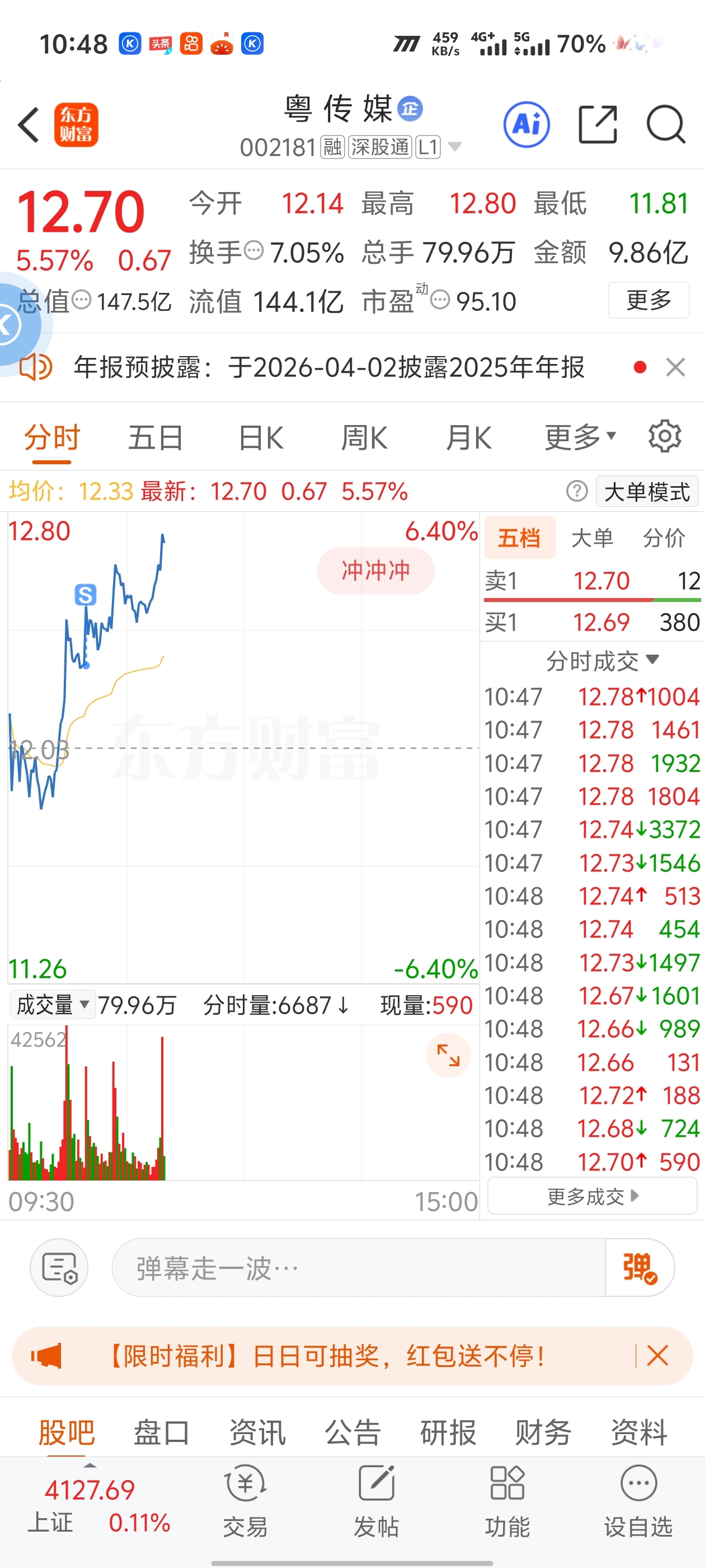 $粤 传 媒(SZ002181)$ 快感谢我