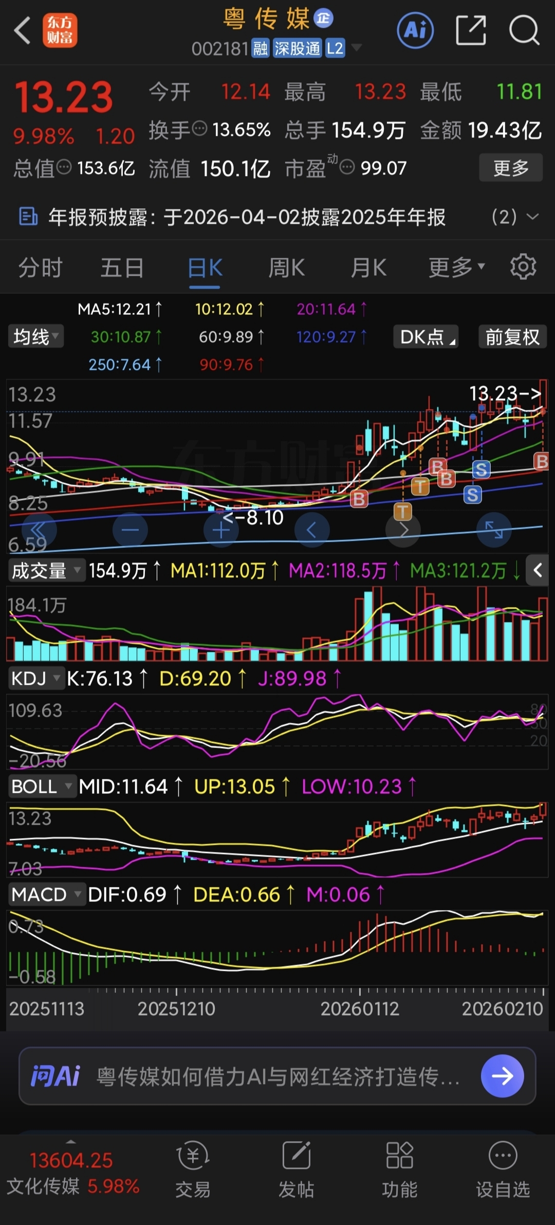 $粤 传 媒(SZ002181)$ 整个一二月份做了你好几次,每次都很给面子,福气票。