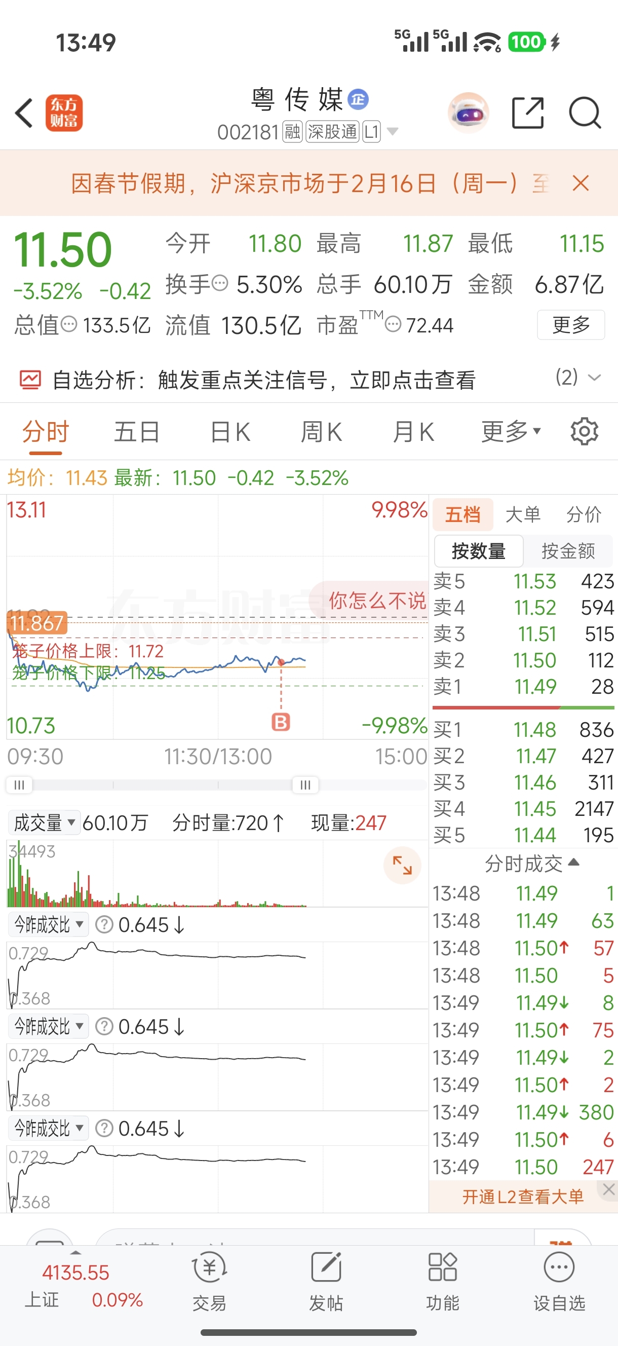 $粤 传 媒(SZ002181)$ 卖操作成买了,过年可咋办呀