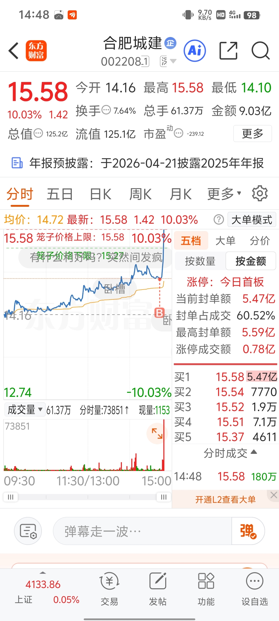 真的开心死了,卖了它立马进的合肥城建。刚进合肥城建就拉涨停了