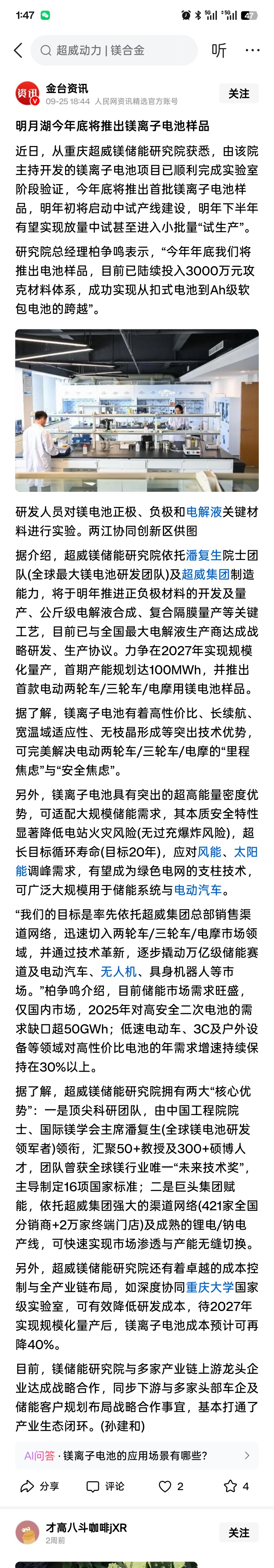 能拿三年的必有厚报。主力随便洗。镁电池很快就要商用了