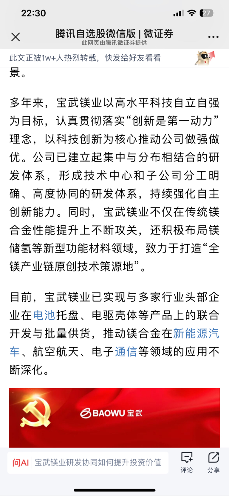 $宝武镁业(SZ002182)$
