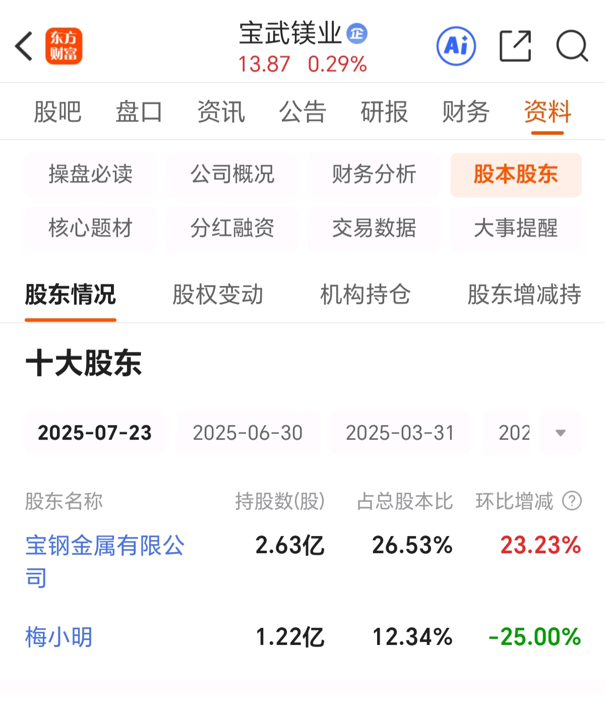 26.53%,宝钢金属持仓比例太少,这可能是股价连续多年被打压的根源吧?!