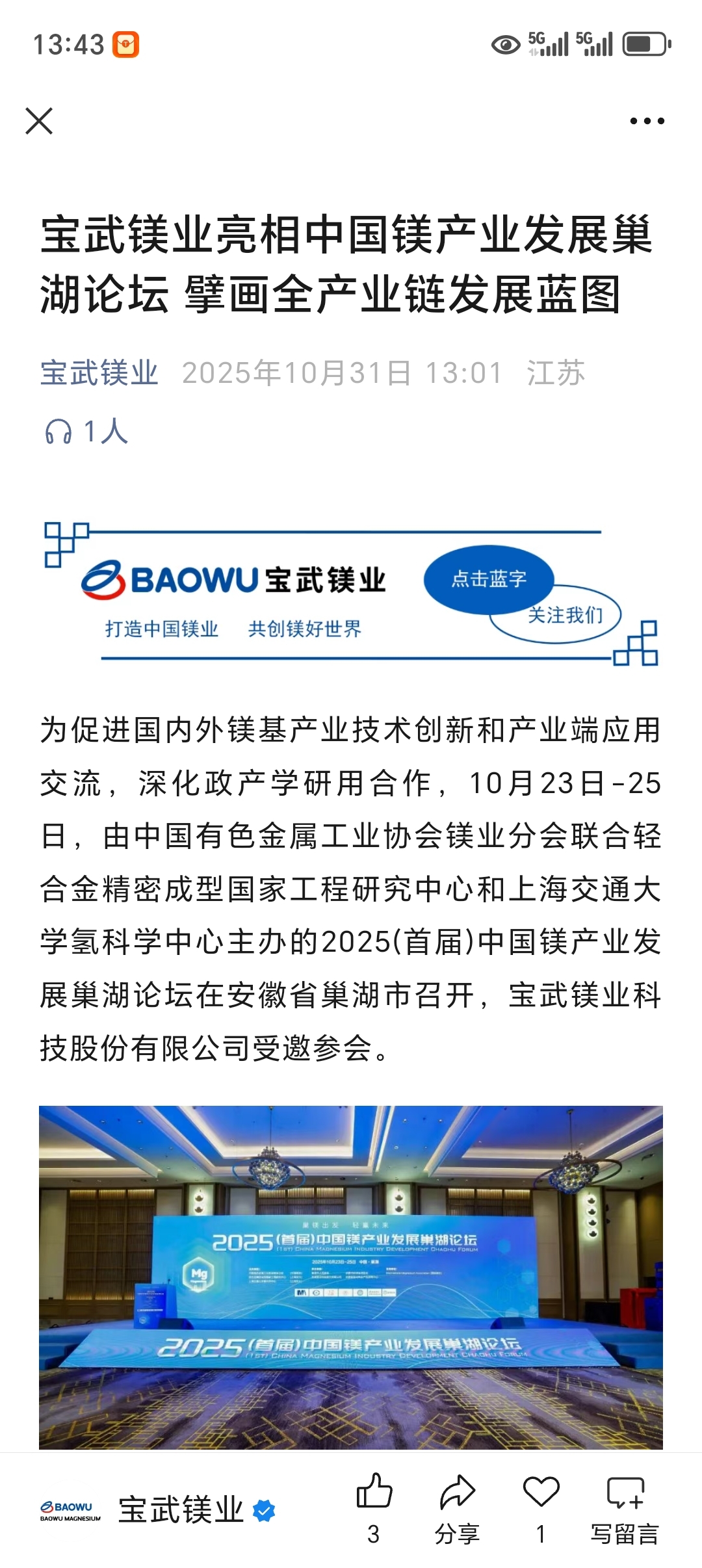 $宝武镁业(SZ002182)$ 一天到晚第一